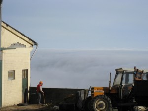 Farmer Looking Out to the Mist